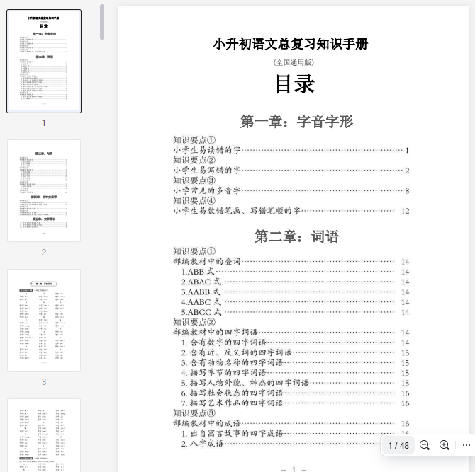 小升初语文总复习知识手册(48页)(PDF格式)