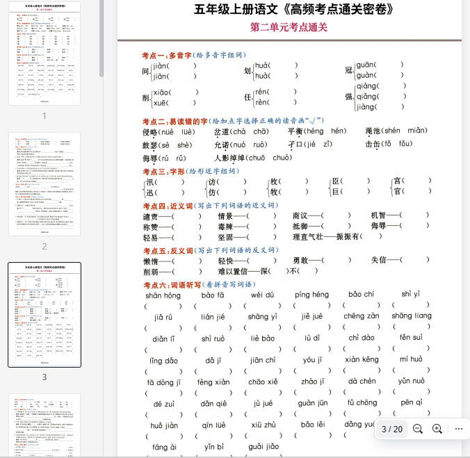 五(上)语文《高频考点通关密卷》完整版