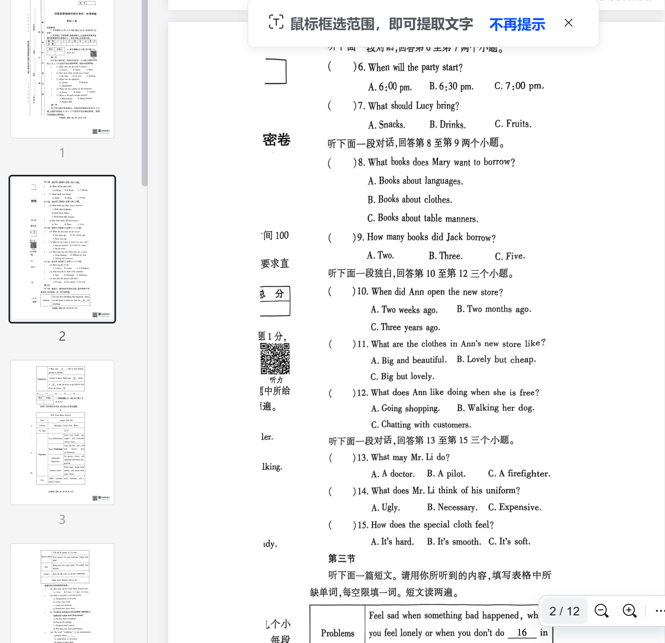 中考密卷·英语A卷 第2页(共12页)