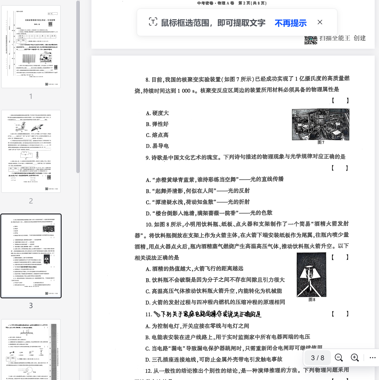 3.建构并使用物理模型来解决物理问题,不仅有助于简化复杂的物理问题,还能帮助我们更好地理解和掌握物理学的本质特征和规律。比如,手提起重物时(如图3所示),可以将前臂简化为______模型;在磁体周围画带箭头的曲线,建构了______模型。